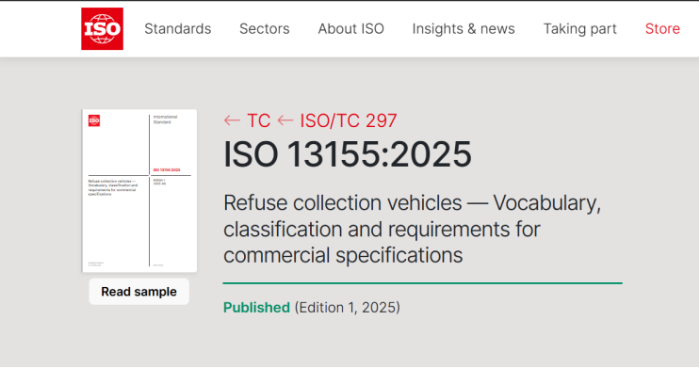 我國牽頭制定的ISO 13155:2025《垃圾車詞匯、分類和商業規格要求》國際標準正式發布