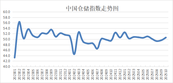 中國物流與采購聯合會和中儲發展股份有限公司聯合調查的中國倉儲指數,2025年10月份為50.6%,較上月回升1個百分點,重回50%以上的擴張區間,業務量增加,設施利用率提高,周轉效率加快,庫存降幅收窄,行業活躍度有所提升,企業補庫意愿略有增強,對后市的預期穩中向好。具體來看,本月指數呈現以下特征: