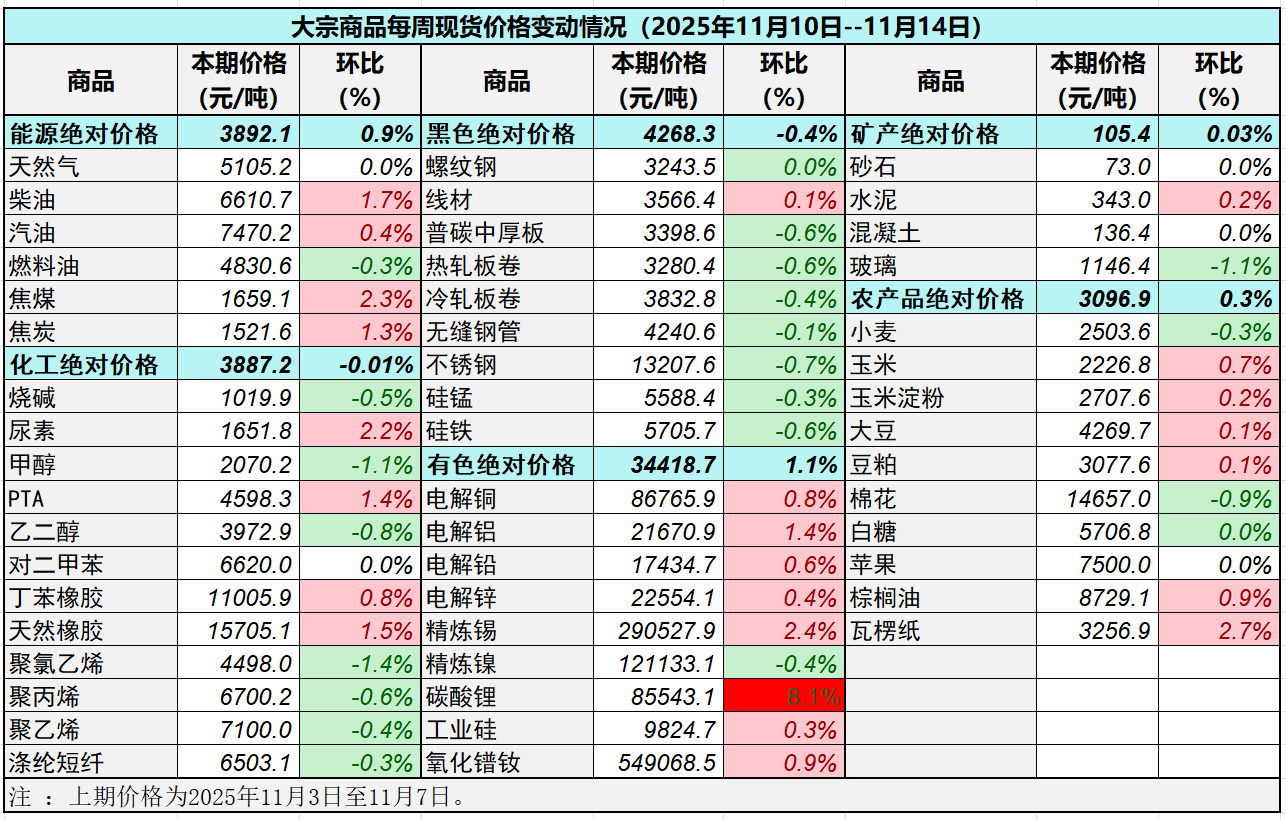 - 中國重要大宗商品市場價格變動情況周報 (251110--251114)