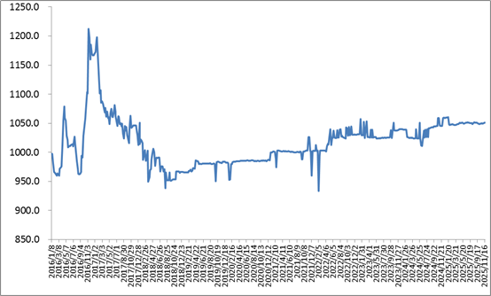 本周(2025年11月17日-2025年11月21日),由中國物流與采購聯合會和林安物流集團聯合調查的中國公路物流運價指數為1050.75點,比上周回升0.01%。