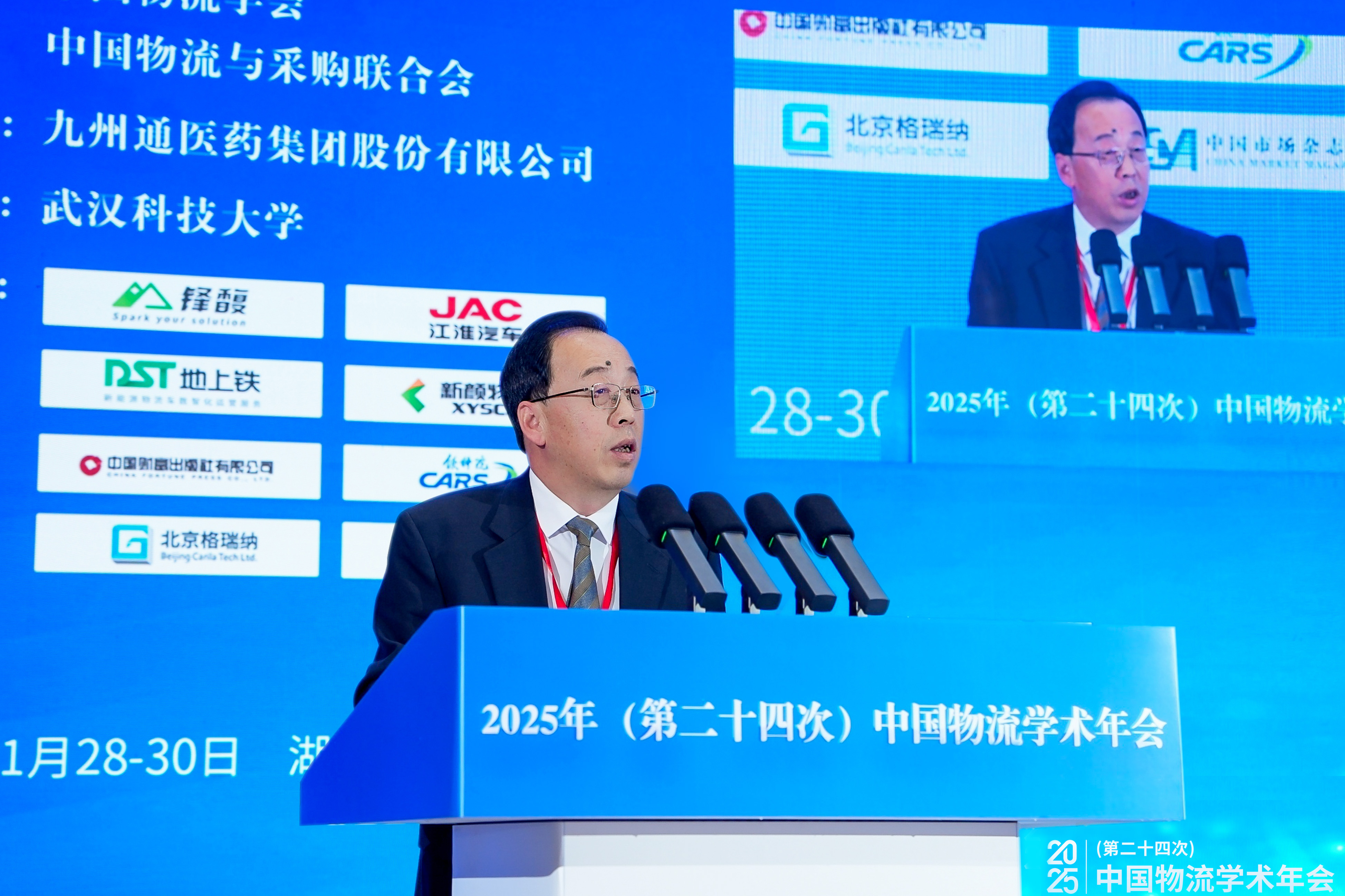 2025年11月29-30日,由中國物流學會、中國物流與采購聯(lián)合會主辦的2025年(第二十四次)中國物流學術(shù)年會在武漢召開。中國物流與采購聯(lián)合會黨委書記、會長蔡 進,九州通醫(yī)藥集團股份有限公司創(chuàng)始人、副董事長劉兆年,武漢科技大學黨委常委、副校長馬騰出席并致辭。中國物流學會會長、全國物流職業(yè)教育教學指導委員會主任任豪祥出席并作中國物流學會七屆五次理事會工作報告。中國物流與采購聯(lián)合會副會長、中國物流學會副會長楊國棟,中國物流與采購聯(lián)合會總經(jīng)濟師、中國物流學會副會長崔忠付,中國物流學會副會長兼秘書長、教育部高等學校物流管理與工程類專業(yè)教學指導委員會秘書長郭肇明分別主持開幕式和全體大會。來自30個省區(qū)市物流領(lǐng)域政產(chǎn)學研各界領(lǐng)導、專家、學者、企業(yè)家及院校、研究機構(gòu)代表1500余人參加會議。