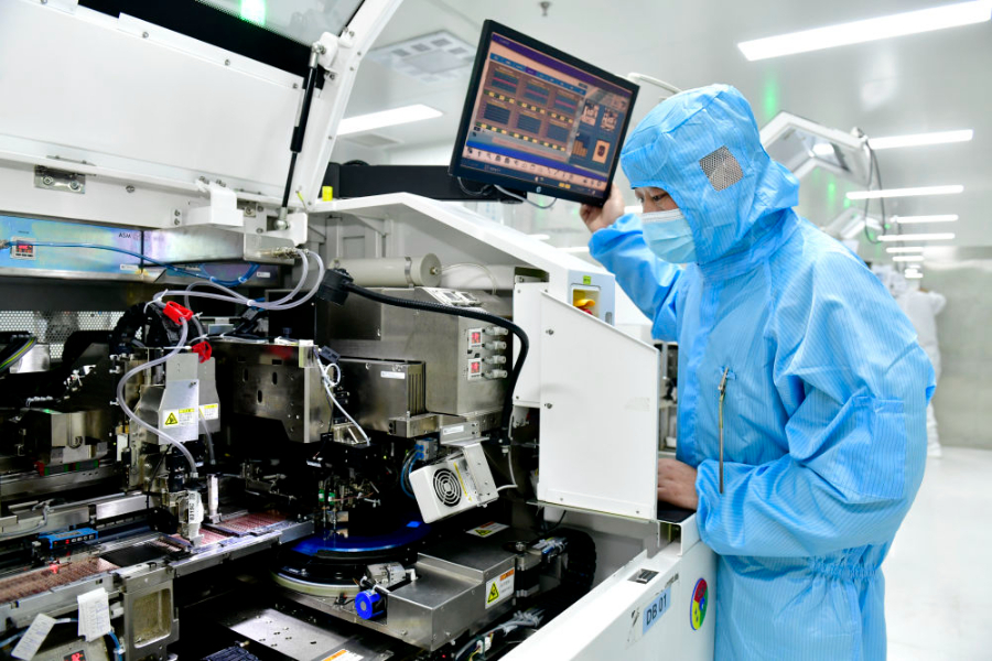 ??2025年2月13日,在山東一家電子有限公司,工作人員在生產線值守。新華社記者 郭緒雷 攝