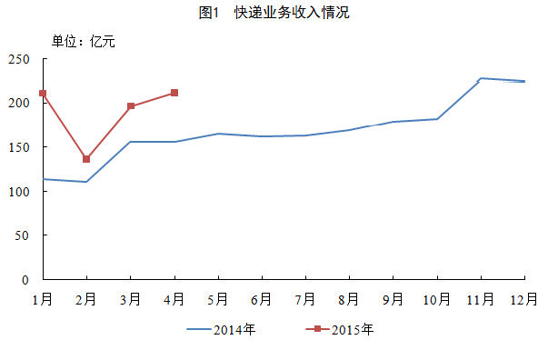 4月份,全行業(yè)業(yè)務(wù)收入完成302.6億元,同比增長(zhǎng)24.1%;業(yè)務(wù)總量完成373.8億元,同比增長(zhǎng)29.9%。