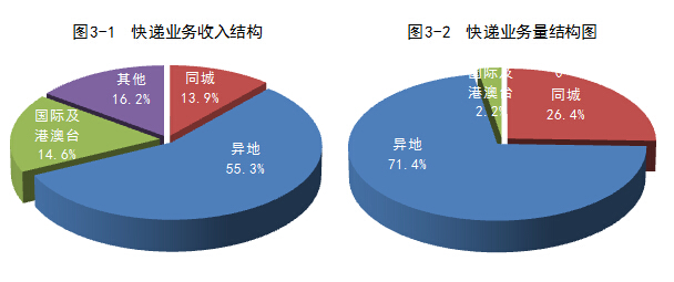 1-4月,同城、異地、國(guó)際及港澳臺(tái)快遞業(yè)務(wù)收入分別占全部快遞收入的13.9%、55.3%和14.6%;業(yè)務(wù)量分別占全部快遞業(yè)務(wù)量的26.4%、71.4%和2.2%。與去年同期相比,同城快遞業(yè)務(wù)收入的比重上升1.7個(gè)百分點(diǎn),異地快遞業(yè)務(wù)收入的比重下降0.6個(gè)百分點(diǎn),國(guó)際及港澳臺(tái)業(yè)務(wù)收入的比重下降了1.9個(gè)百分點(diǎn)。