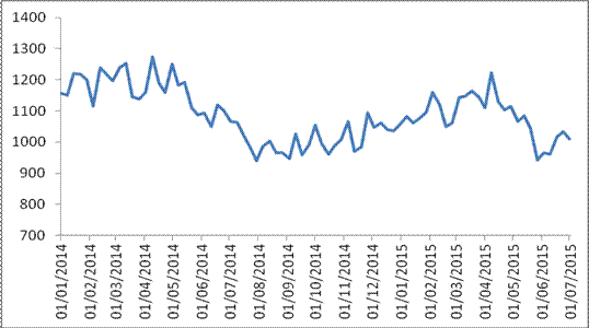 圖 1 2015年以來各周中國公路物流運(yùn)價(jià)指數(shù)