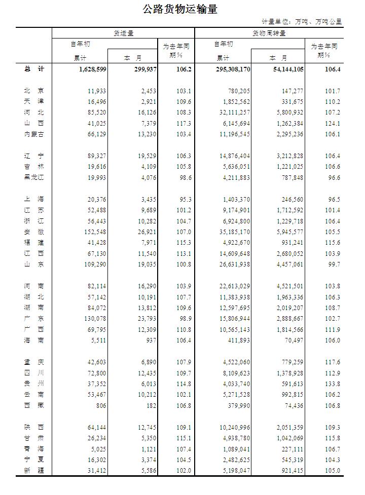 2015年6月公路貨物運(yùn)輸量