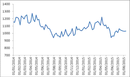 圖 1 2015年以來(lái)各周中國(guó)公路物流運(yùn)價(jià)指數(shù)