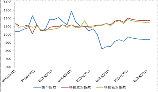 從分車型指數(shù)看,整車、零擔(dān)輕貨指數(shù)環(huán)比均有小幅回升。整車指數(shù)為941.8點(diǎn),比上周回升0.24%,比年初回落8.2%,但比5月末回升14.3%;零擔(dān)輕貨指數(shù)為1154.0點(diǎn),比上周回升0.21%,比年初回升4.3%,比5月末回升3.6%;零擔(dān)重貨指數(shù)為1177.0點(diǎn),比上周回升0.11%,比年初回升6.0%,比5月末回升5.1%。
