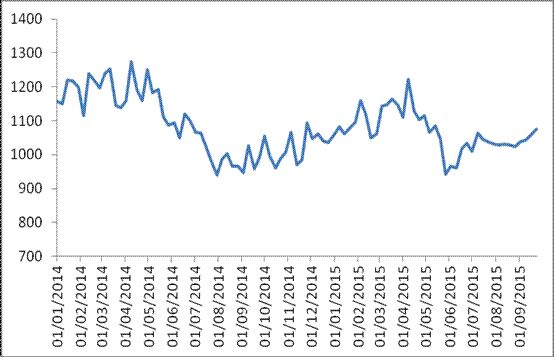 圖 1 2015年以來各周中國公路物流運(yùn)價(jià)指數(shù)