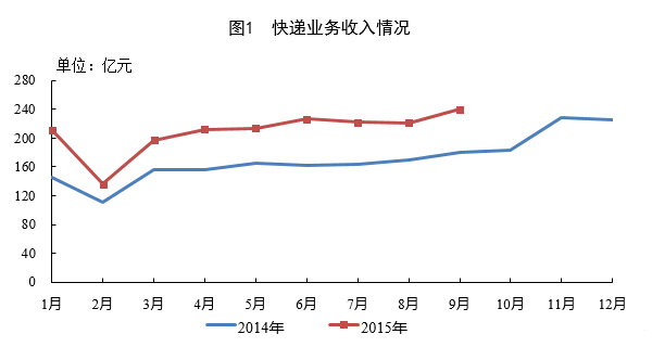 2015年1-9月,快遞服務(wù)品牌集中度指數(shù)CR8為77.4,較1-8月下降了0.1。