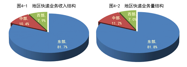 1-9月,東、中、西部地區(qū)快遞業(yè)務(wù)收入的比重分別為81.7%、10.4%和7.9%,業(yè)務(wù)量比重分別為81.8%、11.2%和7%。與去年同期相比,東部地區(qū)快遞業(yè)務(wù)收入比重下降了1.1個(gè)百分點(diǎn),快遞業(yè)務(wù)量比重持平;中部地區(qū)快遞業(yè)務(wù)收入比重上升了0.9個(gè)百分點(diǎn),快遞業(yè)務(wù)量比重上升了0.4個(gè)百分點(diǎn);西部地區(qū)快遞業(yè)務(wù)收入比重上升了0.2個(gè)百分點(diǎn),快遞業(yè)務(wù)量比重下降了0.4個(gè)百分點(diǎn)。