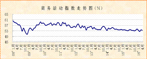 中國物流與采購聯合會、國家統計局服務業調查中心發布的2016年4月份中國商務活動指數雖較上月小幅回調0.3個百分點,但指數仍運行在53%以上的穩健區間,意味著非制造業經濟延續穩定運行態勢。