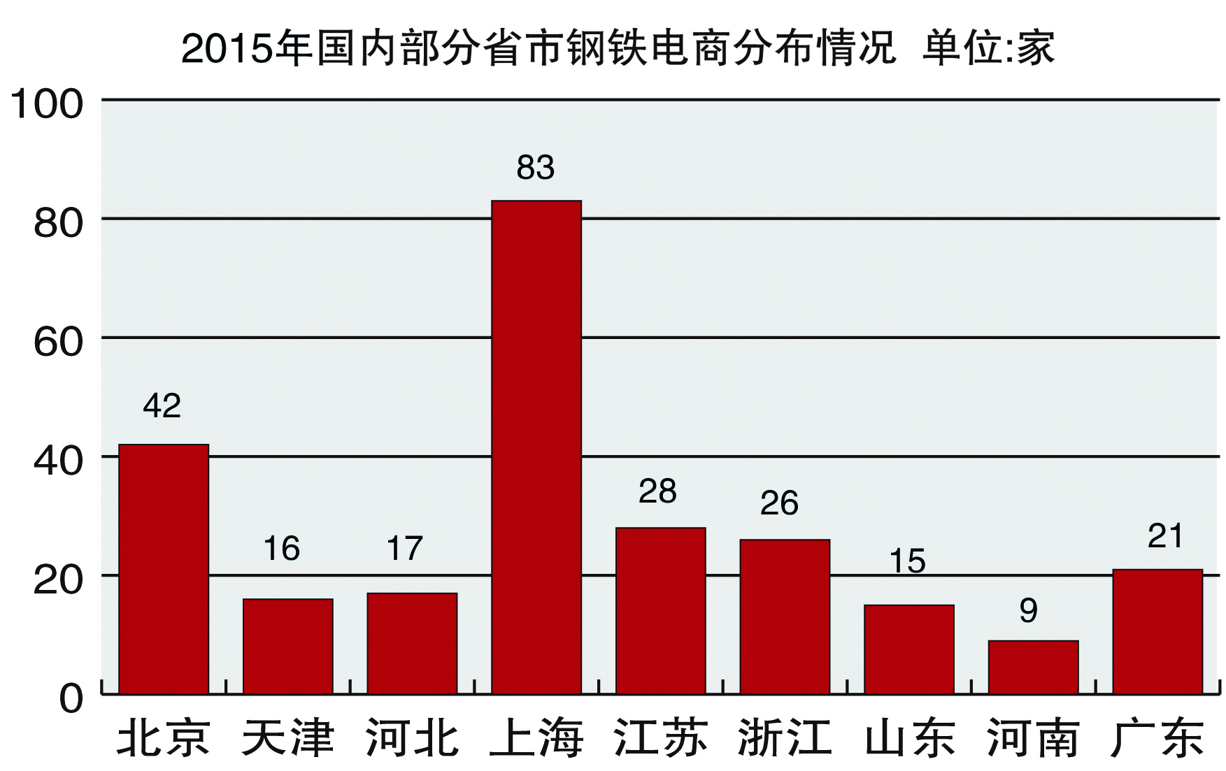 從全國范圍初步統計數據來看,截至2015年底,我國大大小小的鋼鐵電子商務交易平臺已超過300家,在全國大宗商品電子商務企業總數中占比48%左右。其中,而近兩年內新建與正在發力的鋼鐵電商平臺數量占到了57%,一時呈現出“井噴”態勢。