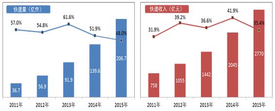2015年,既是“十二五”的收官之年,也是郵政行業發展的突破之年。全行業堅持“穩中求進”總基調,堅決貫徹落實黨中央、國務院決策部署,主動適應經濟發展新常態,堅持問題導向、堅持創新引領、堅持提質增效,行業發展呈現出增長快速、結構優化的發展態勢,全年業務總量突破5000億元,業務收入突破4000億元,快遞業務量突破200億件,圓滿完成了“十二五”規劃的各項發展目標,為“十二五”時期郵政行業發展畫上圓滿句號。