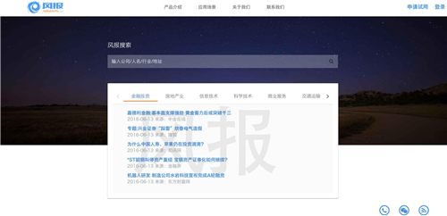 “風報”(www.riskstorm.com)是一套使用自然語言處理技術,分析處理海量政府公開數(shù)據(jù)及媒體信息,為企業(yè)提供風險控制及情報分析的人工智能情報分析系統(tǒng)。繼2015年9月首輪發(fā)布后,開始廣泛服務于各行業(yè),尤其在金融領域獲得認可,幫助企業(yè)提升精細化管理水平,為企業(yè)建立風險防范及情報獲取體系。