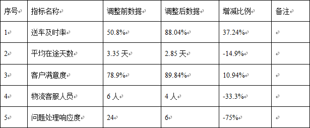 3) 客戶滿意度有較大提升,最大程度的避免因物流送車不及時或送車信息反饋不準確影響銷售的情況發生。