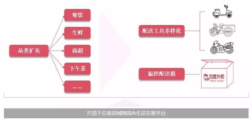 ⑦戰略目標與多元化:百度外賣致力于打造千億級的同城物流和交易的平臺,品質生活,安全送達。百度物流是在基于外賣做物流,其實百度外賣從兩年前發展到今天,以現在的市場份額和市場規模,要實現我們的戰略目標,接下來面臨的問題會很艱巨。