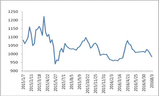 本周(2016年8月1日~8月5日),由中國物流與采購聯合會和林安物流集團聯合調查的中國公路物流運價指數984.4點,比上周回落1.6%,連續三周環比回落,比上年同期下降5.1%。