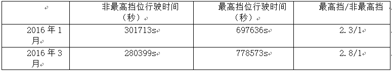 3. 雖然平均速度快,但最高擋行駛時(shí)間占比低,經(jīng)濟(jì)性不高;