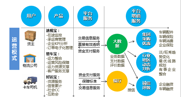 為了構建基于上述數據、關系和用戶的互聯網運力網絡,公司發展了平臺的支付、保險、融資、財務等支撐能力,目前是市場上唯一將運力交易、業務管理、承運結算全流程打通,并發展出完整的“互聯網+ 無車承運”業態的平臺。