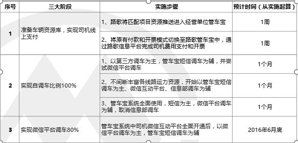 一方面是在更多司機中推廣微信端的注冊、接單等應用,另一方面提升貨主、及招商局物流各應用單位采用路歌微信電商平臺來下單、調車及管理。