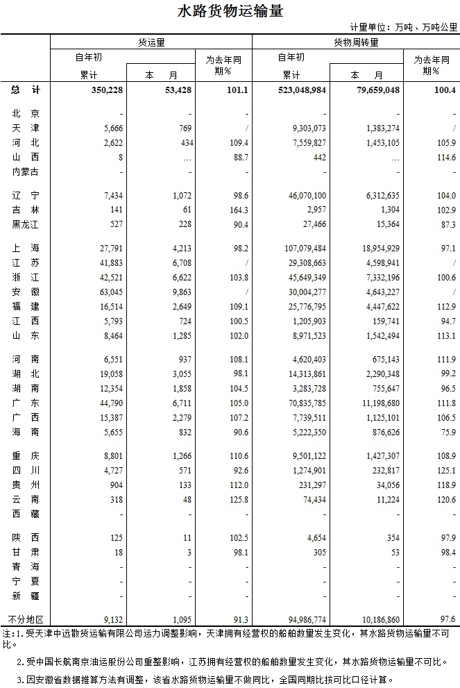 2016年7月水路貨物運(yùn)輸量