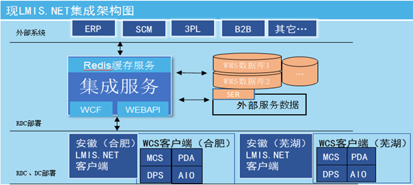 (5)移動應用、WCS數據交互,對外數據接口一體集成于集成服務中;