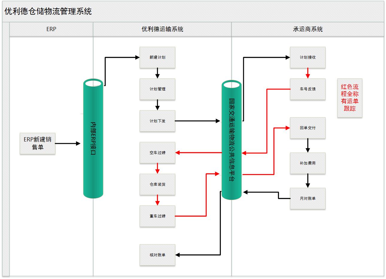 一方面,是企業內部系統的對接:上游企業的倉儲物流管理系統,通過內部接口,實現與ERP系統對接,生產作業單據;同時,倉儲物流管理系統需要與企業目前現使用的地磅數據收集系統進行對接,實現地磅出庫數據與倉儲信息的對接;另一方面,優利德倉儲物流系統通過國家物流平臺,實現與下游承運商的4號推薦軟件,進行單據交換,實現自動傳輸,人工作業量降低,出錯率降低,使數據處理更為高效,最后匯總成的決策分析報表真實地反應公司運營狀況。同時貨物在途信息,貨物簽收信息,回單返回通過系統傳輸實現實時反饋;系統的數據為承運商考核提供了大量的實際數據,貨物的在途和簽收信息通過承運商(接口系統)錄入到系統中使承運商KPI考核更加量化,透明化和可追溯性。