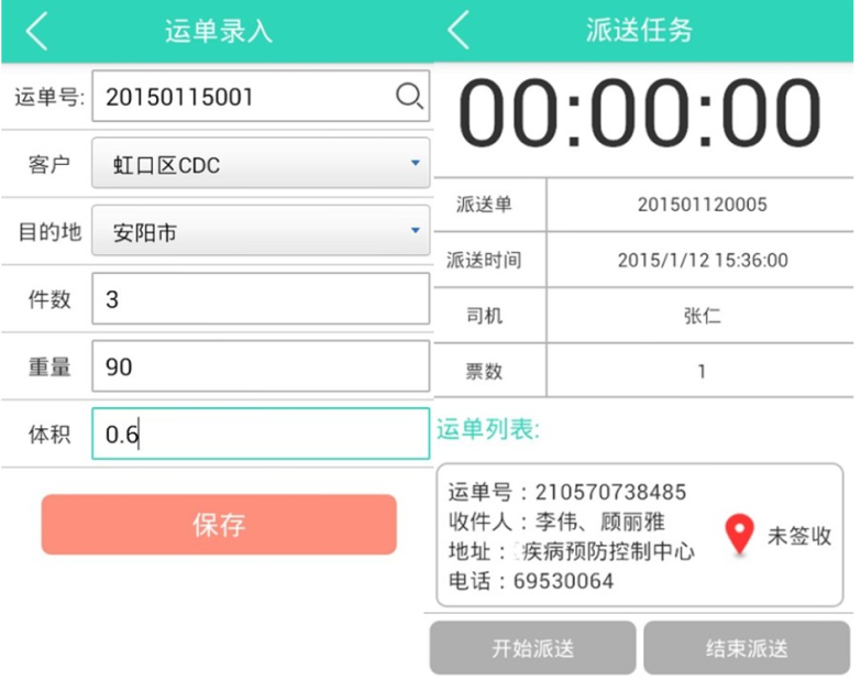 調(diào)線后,可給對(duì)應(yīng)司機(jī)發(fā)送短信,也可以在手持終端接受該調(diào)線任務(wù),并通過(guò)終端開(kāi)始派送任務(wù)及簽收回單,全程記錄時(shí)間及位置信息并回傳系統(tǒng)。
