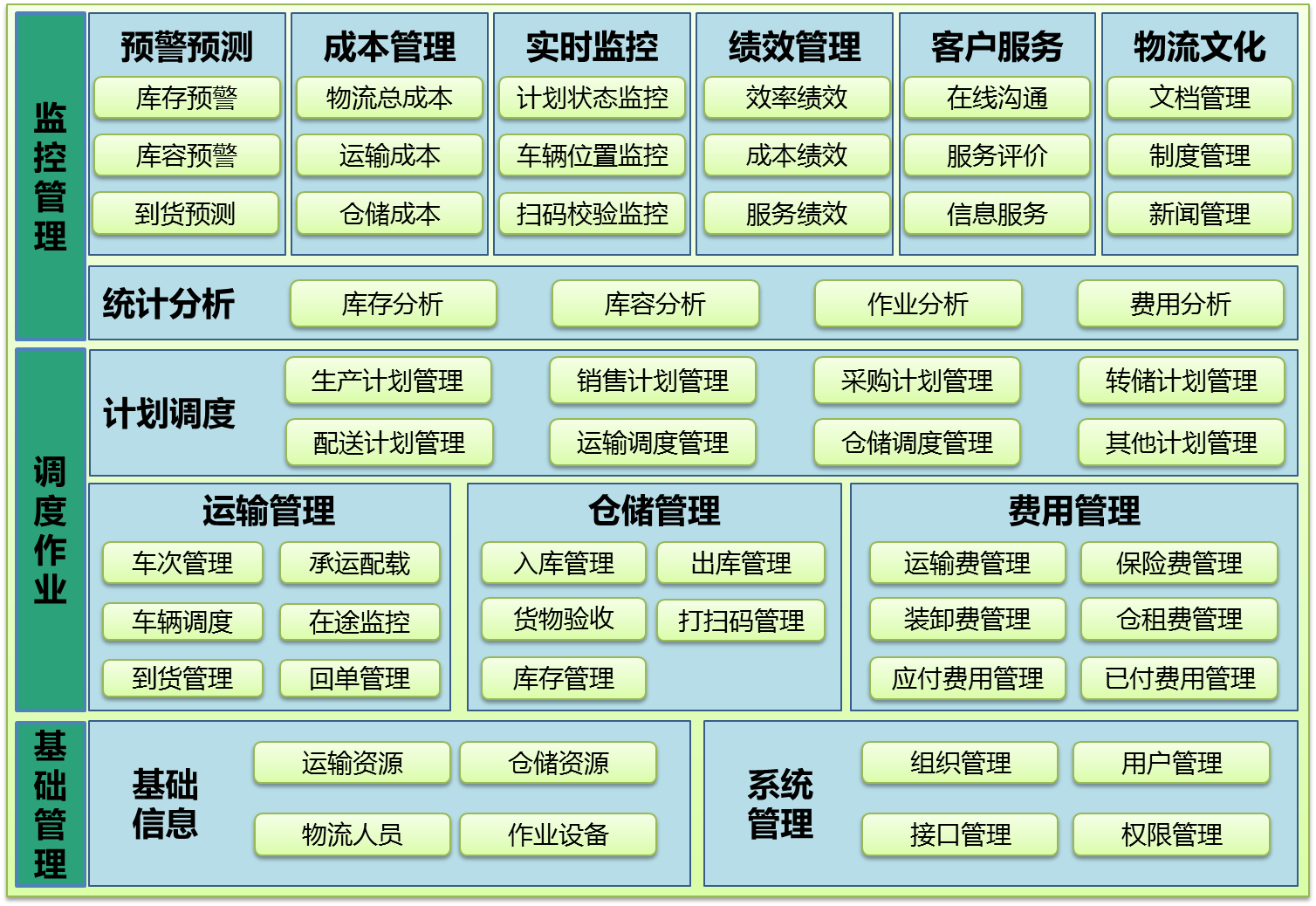 應(yīng)用層為用戶層提供物流業(yè)務(wù)管理的應(yīng)用功能,包括計劃管理、調(diào)度管理、運輸管理、倉儲管理、決策分析、運費管理等。