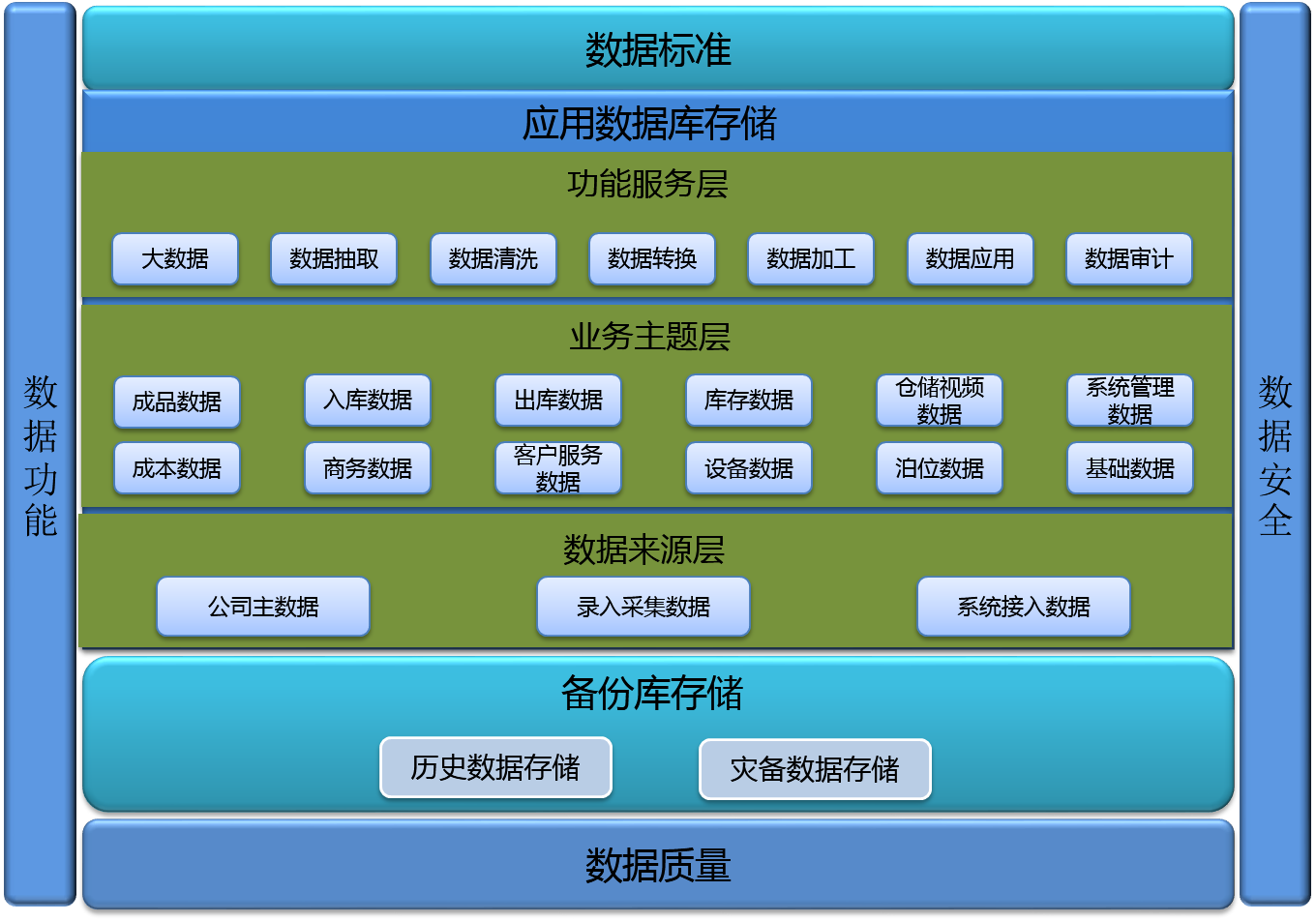 數(shù)據(jù)架構(gòu)主要是基于物流行業(yè)和軟件行業(yè)的數(shù)據(jù)標準、數(shù)據(jù)質(zhì)量、數(shù)據(jù)功能以及數(shù)據(jù)安全標準為基礎(chǔ),物理結(jié)構(gòu)按應(yīng)用數(shù)據(jù)庫存儲、備份庫存儲兩個部分進行劃分,具體內(nèi)容包括: