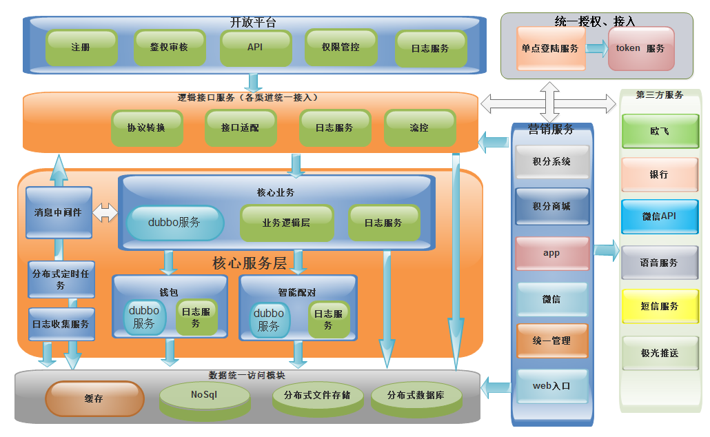 為平臺的核心業務、應用系統和營銷系統提供大量的應用接口,包括:短信服務、語音服務、充值消費服務、外部商城系統等。