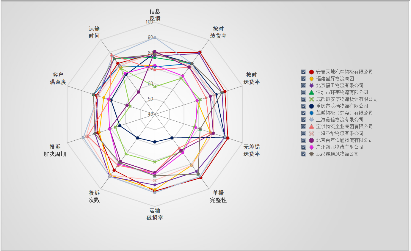 根據運輸過程管理的數據,天行物聯網貨運信息服務平臺可形成對車源的服務評價體系,通過多維度的展現,招商物流的管理人員很容易清晰的看到各類車源和運輸外協商的服務狀態,并可根據業務的實際情況實時更新,便于監督和提升服務質量。