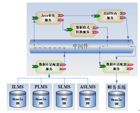 各個業務系統的系統架構有區別,數據庫平臺均不同,各個業務系統在統一結算數據傳遞的格式后,需要實現自動化傳遞,完全依靠對財務系統功能二次開發是很有難度的,對此我司考慮外購成熟中間件產品,并通過適當配置來實現。