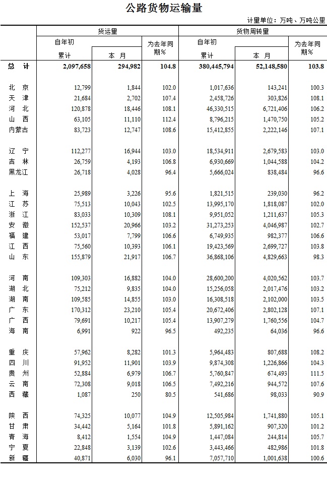 2016年8月公路貨物運(yùn)輸量