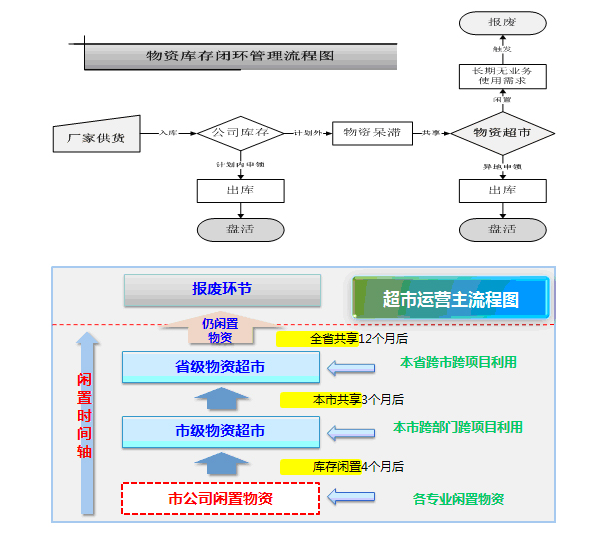 (2)盤活庫存存量:創建物資超市業務,實行呆滯物資全省共享機制