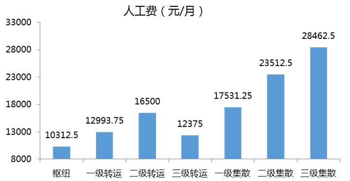 依據(jù)每個等級分撥計算的日工作量統(tǒng)計可得,全國合計節(jié)省295個小時的工作量,若每個人員工作時長為8小時,則全國可節(jié)省人數(shù)36.88人/月,此時人工費每個月可節(jié)省12.16萬元/月。