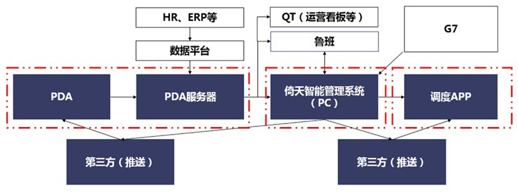 2、倚天智能系統(tǒng)用極光方法推送裝卸車任務(wù)到PDA服務(wù)器和魯班系統(tǒng),任務(wù)號從G7系統(tǒng)獲??;裝卸車操作進度數(shù)據(jù)傳至QT,QT以看板方式展現(xiàn)出來;