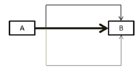 蟻群算法是從模擬自然界中螞蟻的覓食行為發展而來。螞蟻在覓食過程中,留下引誘其余螞蟻跟隨的信息素,若有路徑距離食物更近,則往返一次所需時間更短,此路徑被路經的頻率高,更易累積信息素,能吸引更多的螞蟻。換句話說,累積信息素最多的路線,即最優路線。如下圖示,由A到B,一開始螞蟻有三條路線選擇,但因中間線路最近,往返速度最快,能累積的信息素最多,最終所有螞蟻都將由中間路線通行。