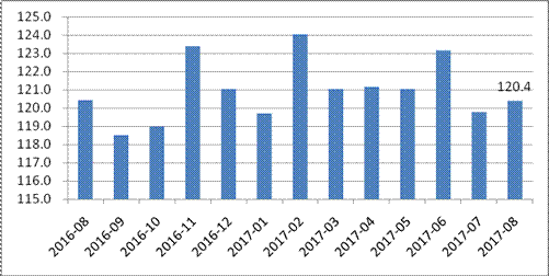 中國物流與采購聯合會和京東集團聯合調查的2017年8月份中國電商物流指數為120.4點,比上月回升0.6點。