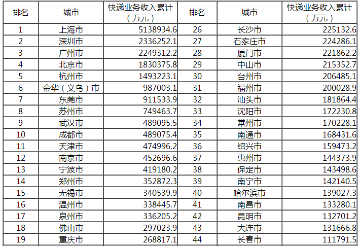 注:郵政行業業務收入中未包括郵政儲蓄銀行直接營業收入。