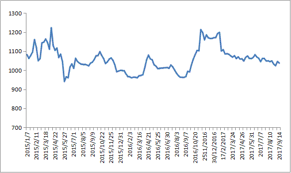 本周(2017年9月11日~9月15日),由中國物流與采購聯合會和林安物流集團聯合調查的中國公路物流運價指數1037.1點,比上周回落0.81 %。