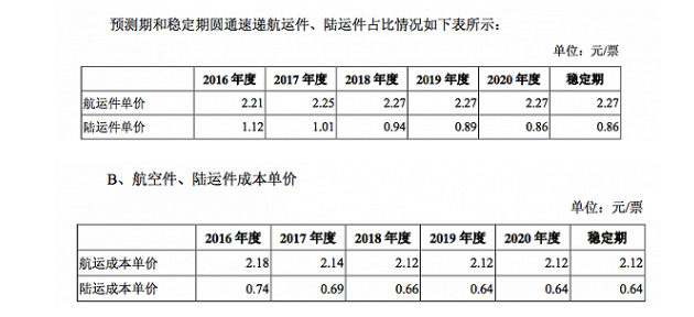 根據(jù)圓通招股書的預(yù)計(jì),2017年的單件利潤(rùn)可達(dá)到0.11元,到2020年可達(dá)到0.15元,年增長(zhǎng)率只有1%。在穩(wěn)定期2020年時(shí),航空件單價(jià)將穩(wěn)定在2.27元,相對(duì)于2016年的2.21元,年增長(zhǎng)率只有1.5%。