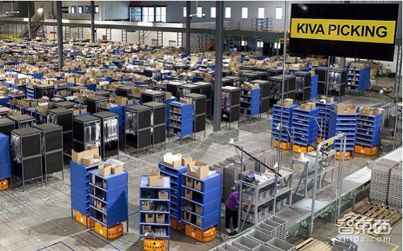 ▲亞馬遜倉庫內機器人在工作