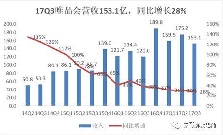 本季度,唯品會客單價同比上漲4%,人均訂單量同比增長7%,人均消費額上漲11%。在此驅動下,唯品會本季度營收達到153.1億元,增幅27.6%。