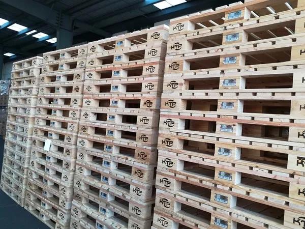 讓人眼前一亮的是倉庫外堆放的滿滿幾排的全新托盤。