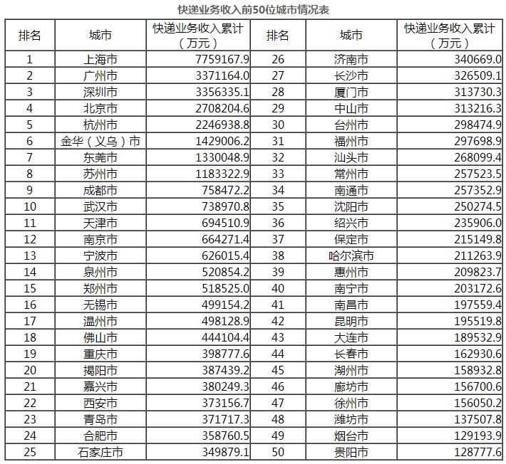 注:郵政行業業務收入中未包括郵政儲蓄銀行直接營業收入。