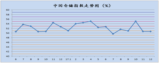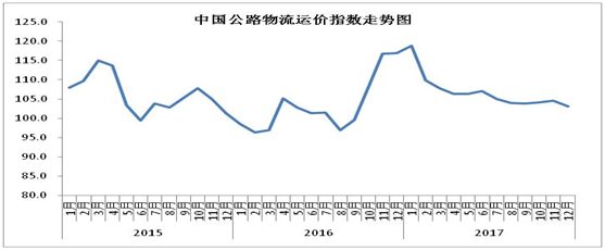 中國物流與采購聯合會發布的2017年12月份中國物流業景氣指數為56.6%較上月回落2個百分點;中國倉儲指數為50.7%,與上月持平;中國公路物流運價指數為103.1點,比上月回落1.32%。