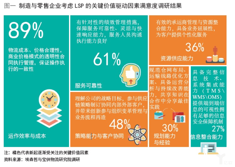 為了更好地展示制造與零售業對物流服務的需求已不同于以往,以及第四方物流為何能在未來的物流市場發展中得以快速崛起,埃森哲與寶供物流研究院針對制造與零售企業在選擇物流服務供應商(LSP)時的關鍵價值驅動因素進行了專項調研。