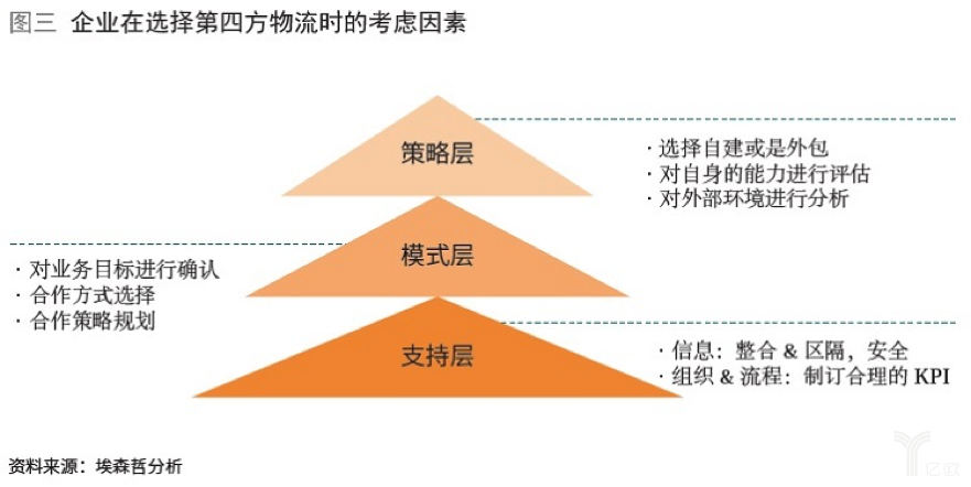 第一個需要考慮的是策略層因素。基于核心競爭力的定位,企業首先需要做出物流環節是自有或者外包的戰略決策。
